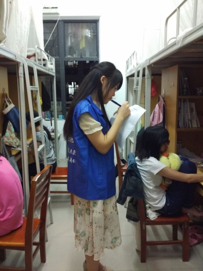 晚上八点十五分,由生活部副部长姚洁銮向全体检查小组成员说明了本次宿舍检查的注意事项。随后,全体人员按预先安排的检查小组,前往各宿舍楼,对宿舍卫生环境、违规电器使用、易燃易爆物以及供电线路安全问题等进行了全面排查,积极消除我院学生宿舍的各类安全隐患。