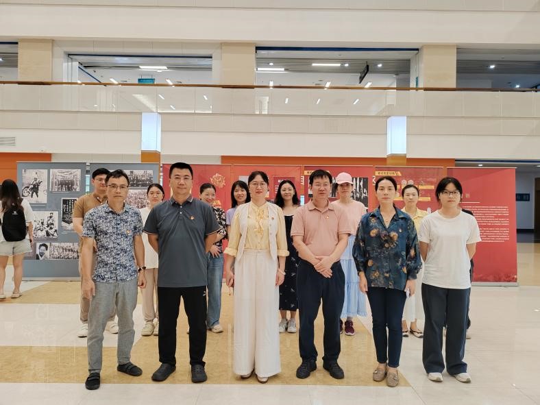 图为学院教工第一党支部党员参观图片展