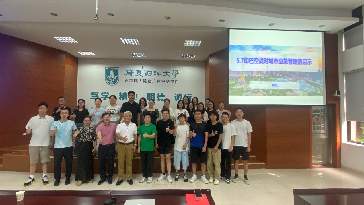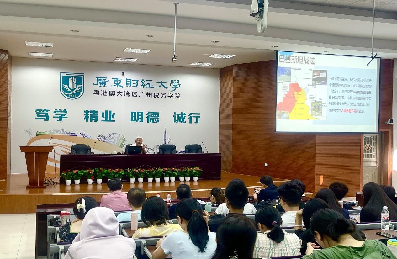 2025年10月9日,原特级飞行员、佛山市应急管理局原局长、二级巡视员、佛山市银发首席专家魏钰应邀来院作主题为“5.7印巴空战对城市安全风险管理的启示”的讲座。本次学术讲座在广东财经大学佛山校区厚德楼243报告厅举行,由我院戴昌桥副院长(主持学院行政工作)主持,黄文浩、颜英、郭广辉三位老师以及佛山校区全体MPA研究生、学院部分本科生出席聆听本场学术讲座。