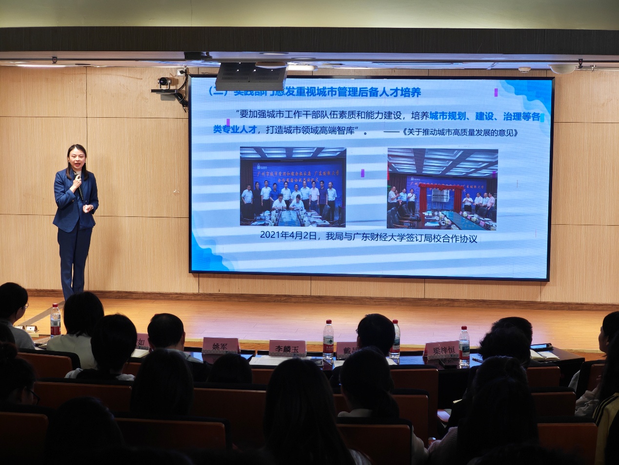 为进一步提升我院师生理论与实践素养及对当前城市治理前沿的交流探讨,1113日由广东财经大学公共管理学院主办的公管学术论坛暨“城市管理创新与发展讲坛第10期”在佛山校区同心楼101举行。特邀广州市城市管理和综合执法局综合调研处副处长李麟玉女士作“深刻认识城市管理学科内涵及专业价值  培育中国式现代化城市管理专业人才”学术报告,学院副院长(主持行政工作)戴昌桥、城市管理系主任王妙妙、城市管理系教师姚军、2025级城市管理专业学生、2025MPA学生参加了本次讲座。