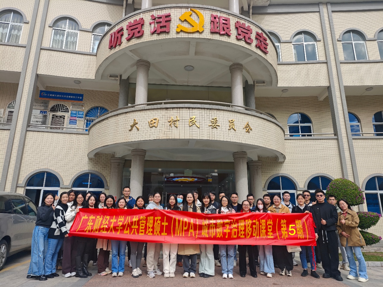 2025年12月14日上午,广东财经大学2024级非全日制公共管理硕士(MPA)师生一行,在任课教师王妙妙的带领下,赴广州市白云区高增大田村开展城乡数字治理专题移动课堂活动。本次课堂聚焦“社区食堂(长者食堂)运营机制”与“高增智慧全域服务治理模式”,由广州城市空间运营管理有限公司负责接待并作专题介绍。师生们通过实地参观、现场交流与座谈研讨,深入了解基层民生服务与全域治理相结合的创新路径,为探索城乡公共服务优化与治理能力现代化提供了生动案例。