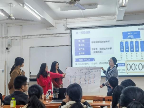 在情景模拟环节,全体学生分为四个研讨小组,围绕着“现场临时指挥部搭建”与“市级指挥体系联动”两项任务开展首轮推演,随后深入探讨了“地铁线网是否全线停运”和“爆炸点周边群众紧急防护”两大核心决策议题。各小组从指挥架构、信息传递、资源调度、舆情引导等多个维度提出应对策略,现场研讨气氛热烈、观点纷呈。